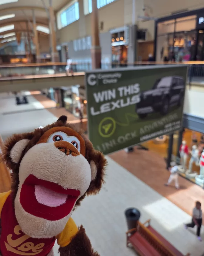 “At Community Choice Credit Union, our goal is to show up UNexpectedly in the communities that we support. A great example of this is utilizing advertising space at Jordan Creek Mall in West Des Moines, Iowa, where we can promote our products and services, like The Money Mammals® Saving Money Is Fun Kids Club™. From giant banners and table sticks to digital ads, more than 20 million people visit Jordan Creek Mall each year and get to experience a small piece of UNbanking!”