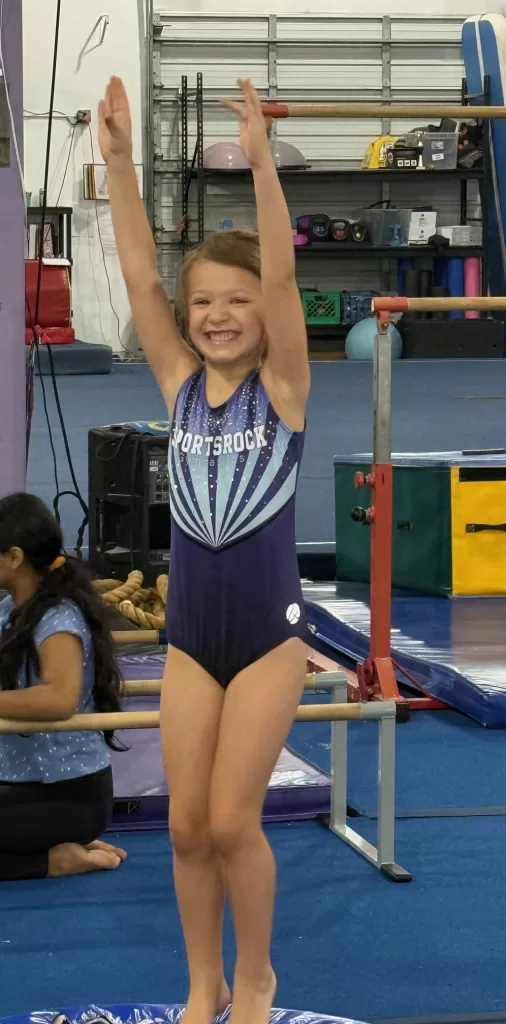 This transition wasn’t without its challenges: Goodbyes to her longtime coaches led to protests and tears the morning of her first session. But all was well once she donned her new sparkly leotard and recognized some friends on the mat.